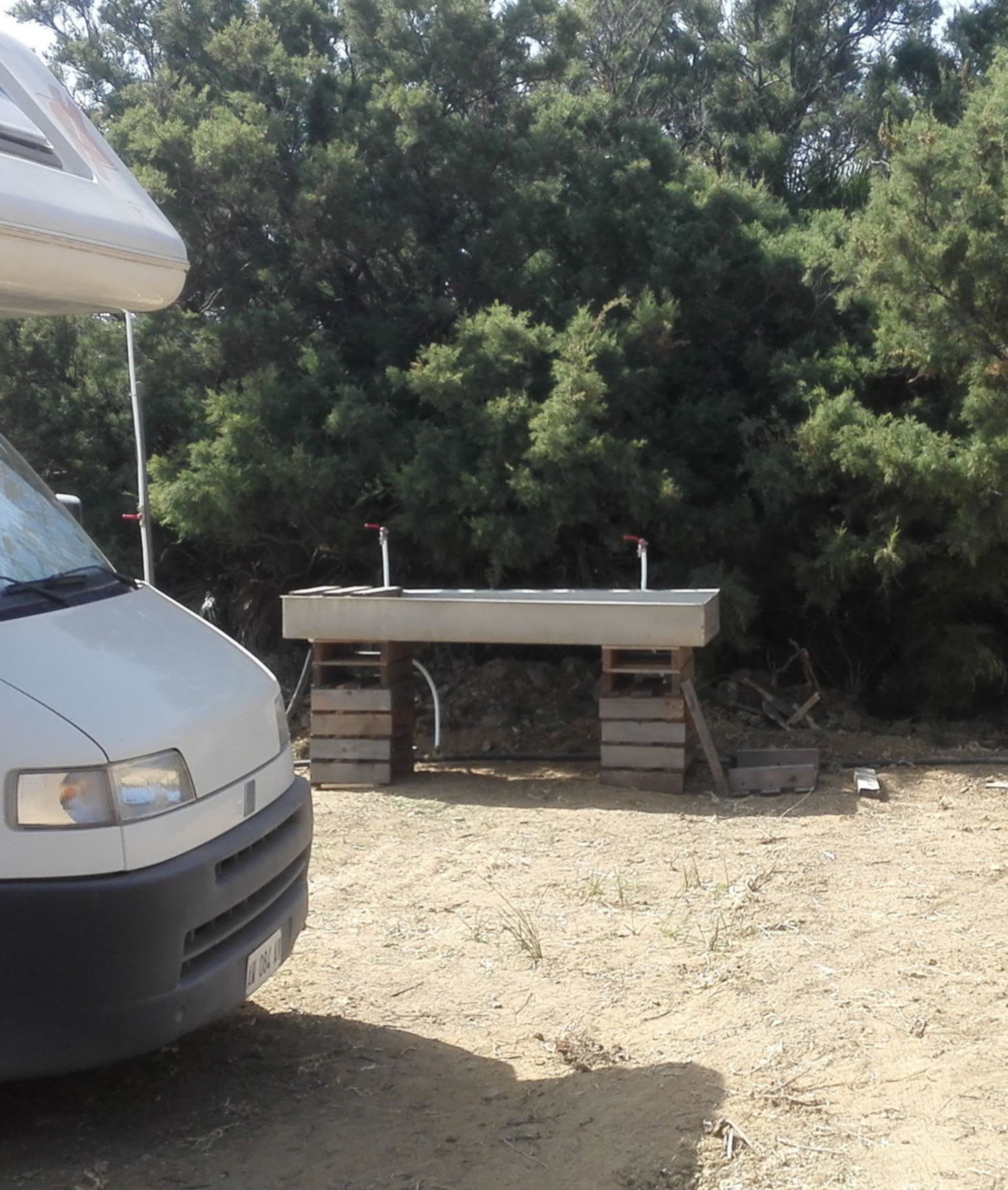 Zona scarico acque grigie/nere per cassette e scarico nautico.
