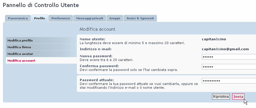 Da questo momento, la password per accedere al forum è quella appena impostata (e che si è in grado di ricordare).