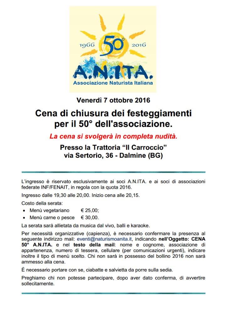 La cena si svolgerà in nudità ed è riservata ai soci in regola con la quota 2016.