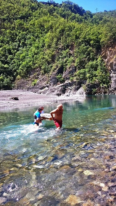 Parecchi si erano fermati a dormire a Bobbio o in zona e fermavamo Sergio e Maria che stavano tornando a casa con i due bambini dicendo loro di aspettare… dalle 11 sole e cielo completamente azzurro :D fino al tramonto, pian piano scendevano tutti e Valentina e Pierluigi arrivavano con la canoa che poteva essere utile anche per eventuali trabordi, la porchetta arrivava regolarmente con Giacomo, Pierina, Tric e Marco di ritorno da due giorni a Zello e il secchiello pienamente rinato :mrgreen: premiava tutti i presenti per l'atto di fede in particolare di quelli venuti da lontano...
