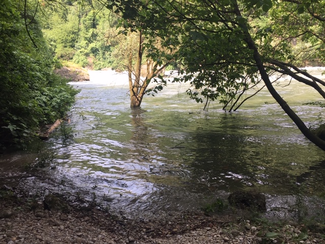 Tipo di spiaggia: Riva del fiume con ciotoli e bosco