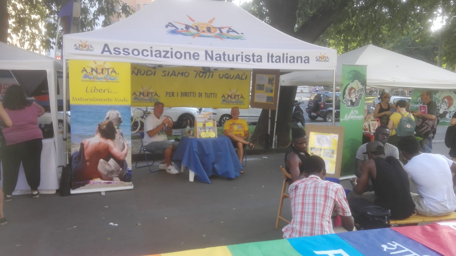 Qui si troverà del materiale le magliette a € 15,00 (il cui ricavato andrà ad un'associazione organizzatrice del Pride), o le riviste Italianaturista in formato cartaceo, ad € 2,00 la copia, oltre agli altri e soliti gadget, alle bandire ecc...