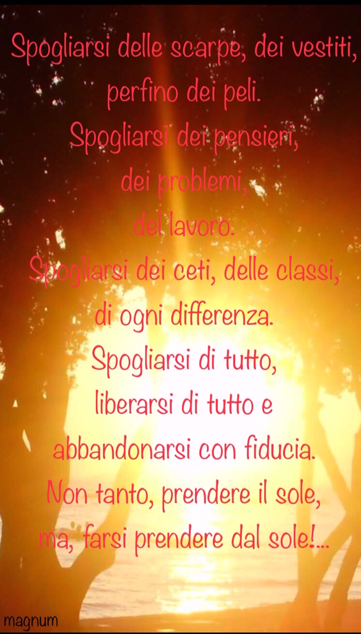 Con queste premesse, sicuramente sarebbe da aprirmi il cranio e sradicare l'idea del nudismo come conquista di llibertà, fisica e spirituale...