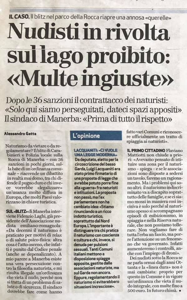 1) che a Manerba del Garda vi sia una delibera che vieta la pratica del naturismo (probabilmente impugnabile ma nessuno l'ha mai fatto) è cosa nota da tempo per cui chi ve lo pratica dovrebbe sapere a cosa va incontro.