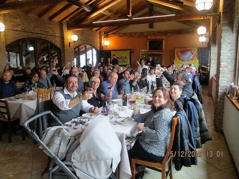 al pranzo di Natale TrebbiaNat-Anita-Ciurma per la bellissima giornata in ottima compagnia e la splendida occasione per fare gruppo e scambiarci gli auguri di Natale!! Dopo aver avuto ben 115 prenotazioni anche superiori alla capienza della sala purtroppo abbiamo avuto anche 31 rinunce pari a circa il 27% delle adesioni praticamente una rinuncia ogni 4 adesioni ma come afferma un famoso detto i presenti hanno sempre ragione.