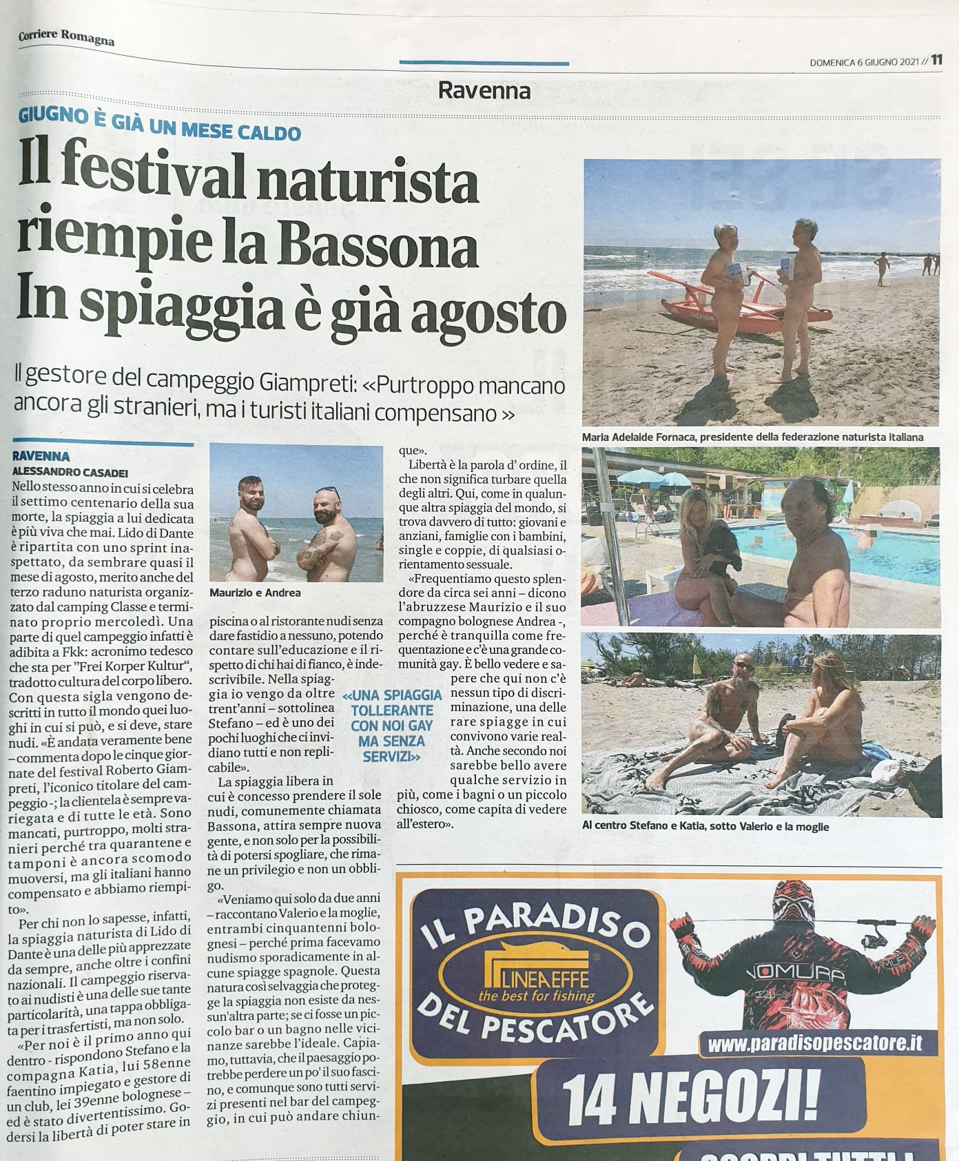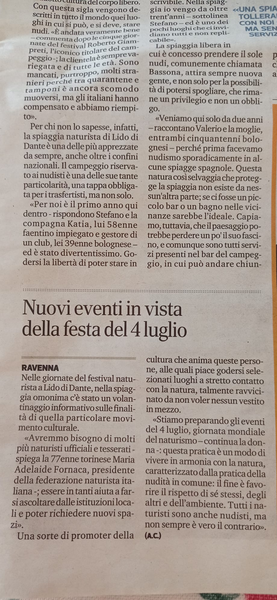 Nell'intervista la Presidente annuncia che si stanno preparando eventi per il 4 luglio, giornata mondiale del Naturismo.