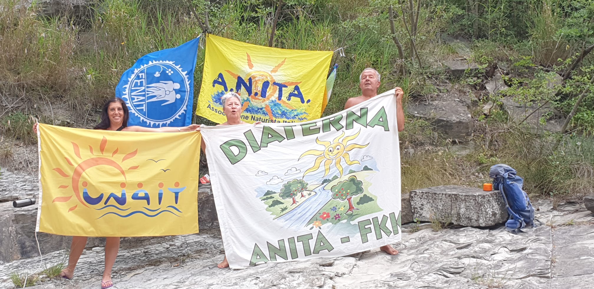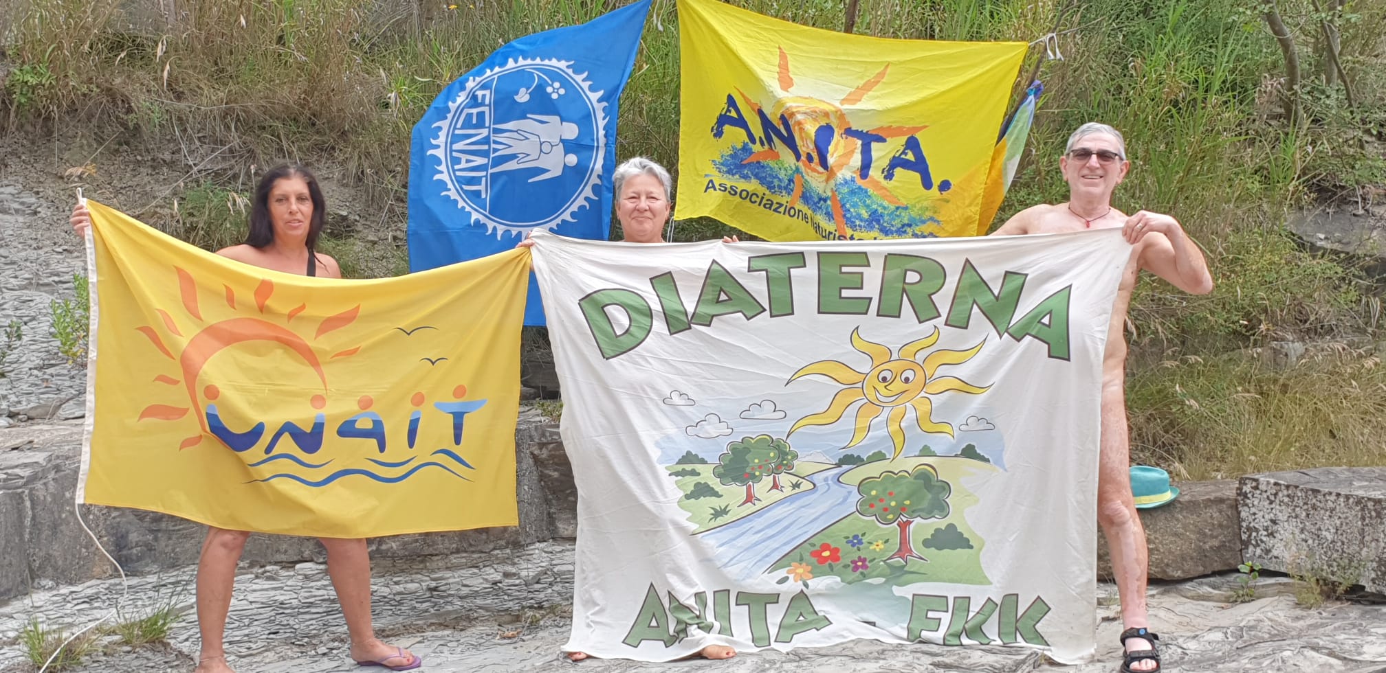 Festeggiata anche al Diaterna la giornata mondiale del Naturismo con le bandiere A.N.ITA., UNAIT, Diaterna e FENAIT