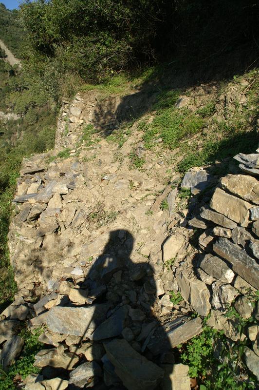 Il sentiero soprastante: in alcuni punti passa rasentissimo alle numerose frane, tanto che qua e là bisogna inventarsi un percorso alternativo.