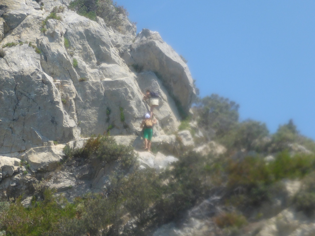 Provo a mettere una foto: se riuscirò, il costone roccioso sulla destra dell'immagine è la via dalla quale scendono quelli che arrivano a piedi.