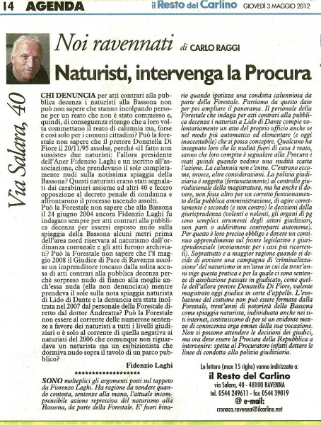 In ogni caso, se continua questa persecuzione contro i Naturisti, saremo costretti a incatenarci nudi in Piazza del Popolo a Ravenna per protesta: siamo gli unici a tenere così tanto a questo luogo di libertà e di civiltà conquistato in decenni di battaglie? Spero di no!