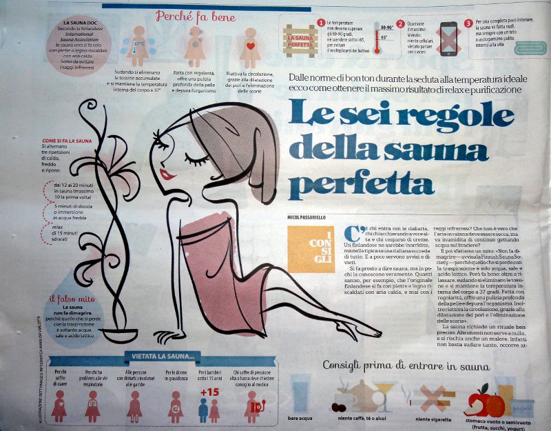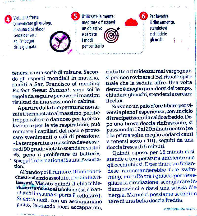 Su Repubblica di oggi c'e' un articolo sulle regole per fare la sauna. L'articolo online e' a pagamento.